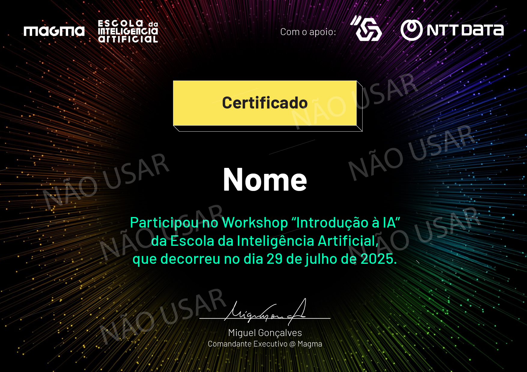 A presença em cada Workshop dá-te o Certificado Oficial do Workshop.